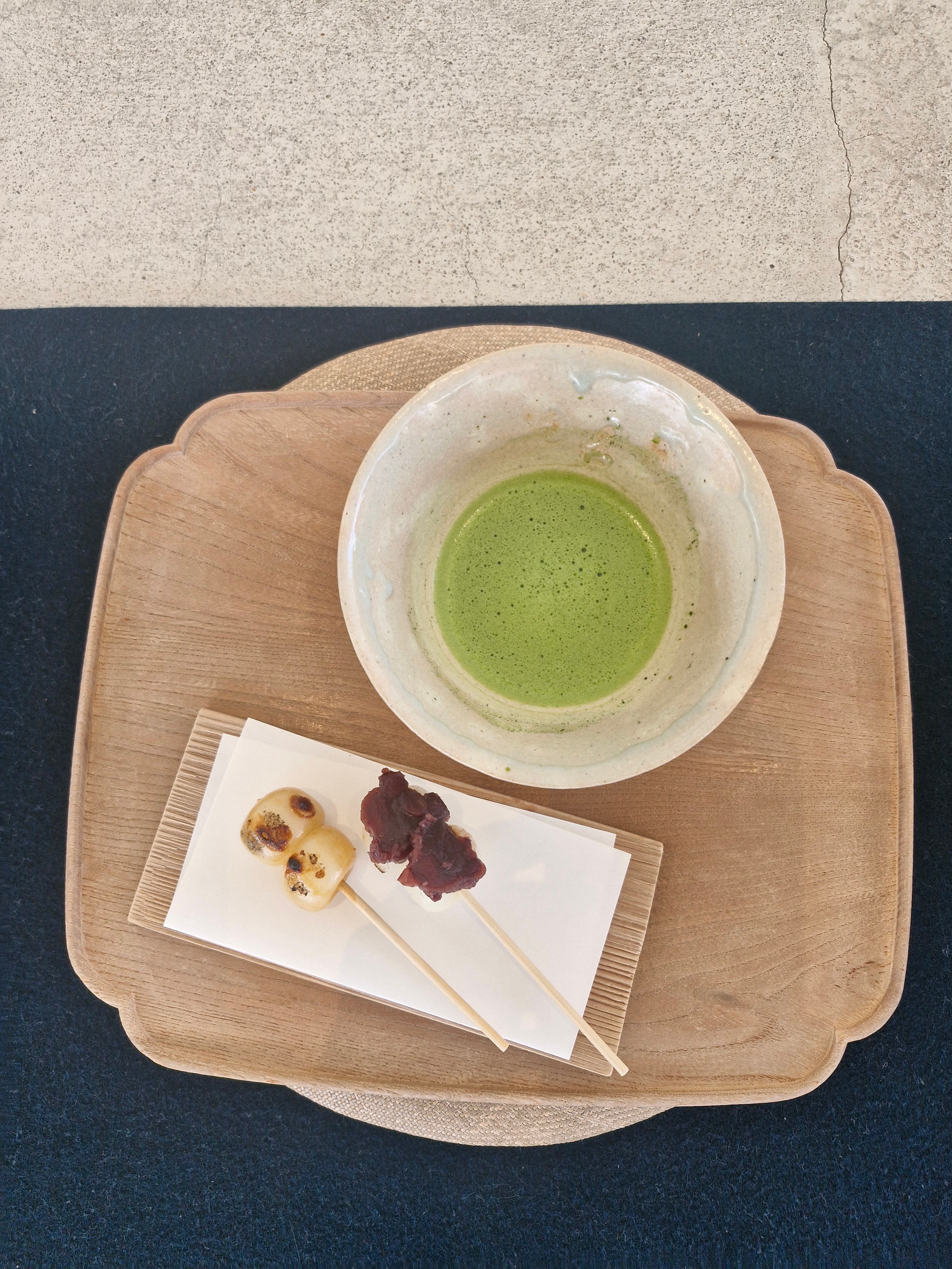 After a while we got back on our bikes and peddled to our last stop: the foyer of a museum where they had a lovely matcha cafe. We sat on bamboo mats surrounded by huge plate glass windows and our guide ordered another Japanese speciality for us: matcha green tea and mochi. We had already eaten a lot of matcha green tea soft serve ice cream in Kyoto but this was the first time we had actually had a matcha tea. Personally I found it a little bland only frothed with water but I suppose it was good to taste it pure. (I would add hot frothy milk and honey to it).