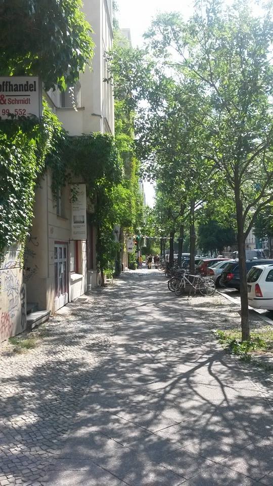 One afternoon when I finished work early, I consciously took about half an hour to walk from the train station to my apartment. I photographed the buildings and the plants, the skies and the shadows. I walked down the middle of the street to get a new perspective. I stopped and scrutinised things I hadn’t seen before. I tried to really take in my whole street with all my senses open and alive. When I got home, I made a cup of hot peppermint tea and I sat on my balcony and took in the fantastic view. I really do have a great balcony and a great view. I can, just as Isherwood did, observe my neighbours and the activities of the street. It is a colourful and interesting view. The swifts fly and chirp and hunt bugs on a summer evening and the sun reflects back onto me from the windows on the opposite buildings. I can look over the old border and see former West Berlin from my former East Berlin apartment and I can reflect on what that view has meant to so many people over the decades.